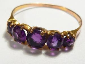 Antique 5 Stone amethyst 9ct gold Ring     Completed    $124