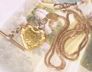 Antique Victorian Gold GF Slide Watch Chain & Locket     Completed    $123.58