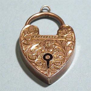 Edwardian 9ct 9kt rose gold engraved padlock charm     Completed    $122.83