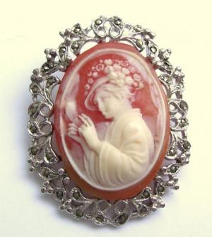 PRETTY ANTIQUE SILVER MARCASITE CAMEO BROOCH     Completed    $124.34