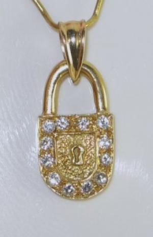Estate 18K Gold 1/4ctw G-SI Diamond Padlock Pendant     Completed    $123.94