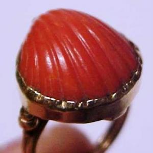 STUNNING ANTIQUE 14K CARVED SALMON CORAL RING     Completed    $123