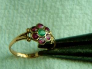 ANTIQUE 15CT GOLD EMERALD + RUBY DAISY RING.     Completed    $123.26