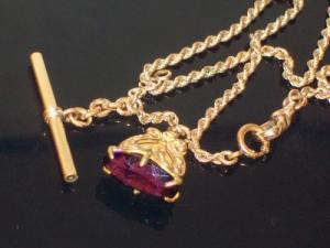 Antique Victorian Gold GF Watch Chain & Amethyst Fob     Completed    $122.56