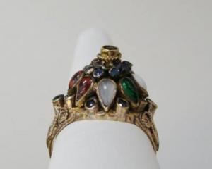 Antique goldtone suffragette ring green/white/violet     Completed    $121.59