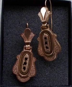 ANTIQUE VICTORIAN HOLLOW GOLD DANGLE EARRINGS c1870     Completed    $122.5