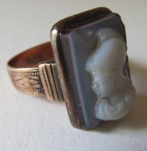 Antique large goldstone 18K gold ring unusual     Completed    $121.8