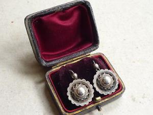 Antique 14K Ruby Seed Pearl Drop Earrings GORGEOUS!     Completed    $122.5
