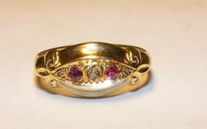 ANTIQUE PRETTY 18ct RUBY & DIAMOND 3 -STONE RING     Completed    $112.58