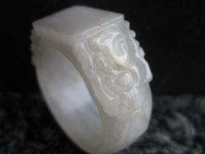 Antique Chinese Carved Mutton Fat White Jade Ring     Completed    $112.51