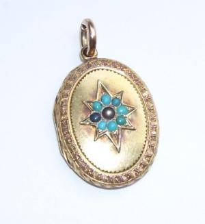 ANTIQUE VICTORIAN GOLD TURQUOISE PEARL PHOTO LOCKET     Completed    $112.73