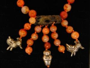 ANTIQUE CARVED CARNELIAN AGATE JADE NETSUKE NECKLACE     Completed    $113.49