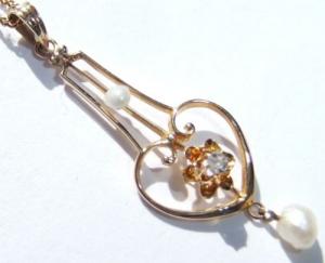 ANTIQUE 10K GOLD PEARL DIAMOND LAVALIER NECKLACE     Completed    $113.5