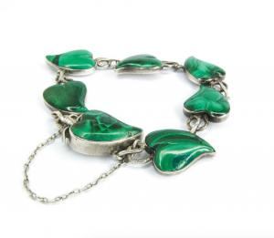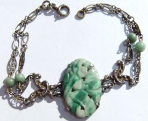 ANTIQUE ART DECO STERLING SILVER JADE BRACELET     Completed    $113.5