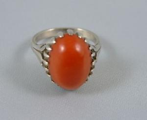 Antique solid silver & coral ring c1900     Completed    $109.84