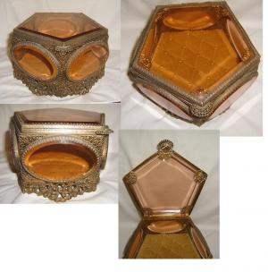 ANTIQUE ORMOLU PINK BEVELED GLASS JEWELRY BOX CASKET     Completed    $110.52