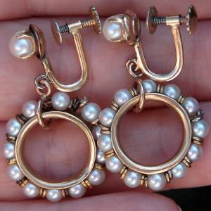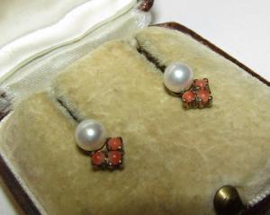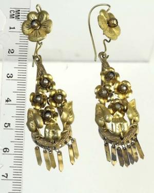 Antique Earrings 1900's Gold flowers beads     Completed    $110.5