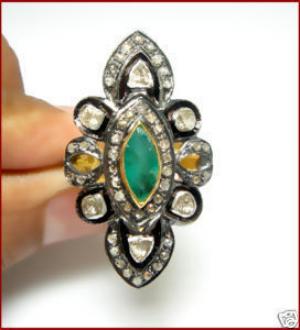 0.82ctw Rose/Antique Cut Diamond & Emerald Ring     Completed    $110.32