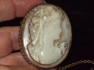 Lovely Antique Hand Carved Cameo Brooch     Completed    $105.5