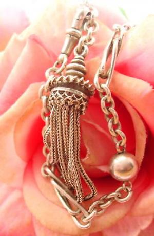 ANTIQUE SILVER ALBERTINA HEART TASSEL BRACELET 1904     Completed    $104.59
