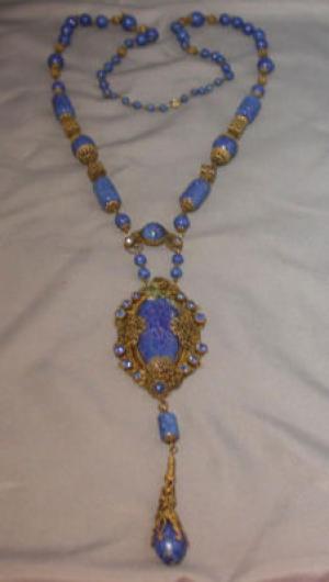 Antique Deco Ornate Lapis & Filigree Huge Necklace     Completed    $105.49