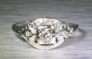 GORGEOUS ANTIQUE DIAMOND ENGAGEMENT RING 14KT WG     Completed    $105.5