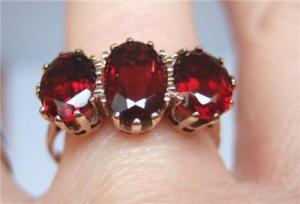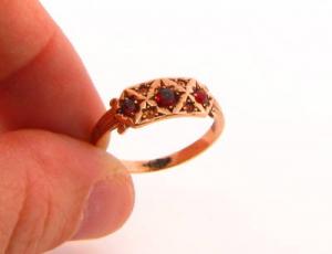 Antique Victorian 1850s 3 Garnet 14k Gold Band Ring     Completed    $103.51