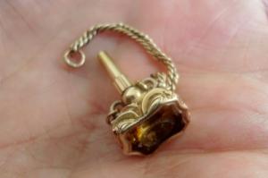 Antique large agate inset gold filled watch fob key     Completed    $103.86