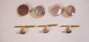 Antique 14Kt Gold Mother Pearl Cuff Links Studs Set     Completed    $104.49