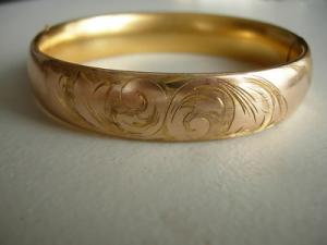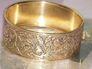 LOVELY ANTIQUE GOLD REPOUSSE BANGLE BRACELET     Completed    $103.95