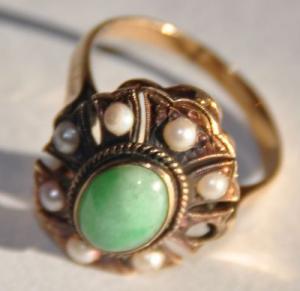 Vintage Antique Gold Jade and Pearls Ring     Completed    $103.55