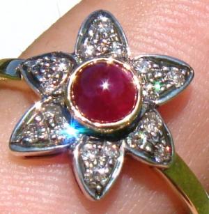 14K RUBY CABOCHON DIAMOND FLOWER ANTIQUE RING NR $1     Completed    $104.5