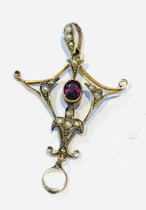 Antique Victorian Gold Filled Plated Garnet Brooch     Completed    $103.62
