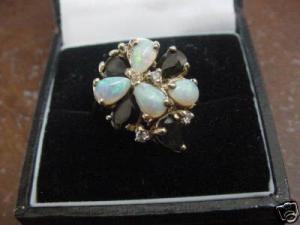 ANTIQUE 14K GOLD OPAL AND SAPHIRE RING SIZE 7     Completed    $103.5