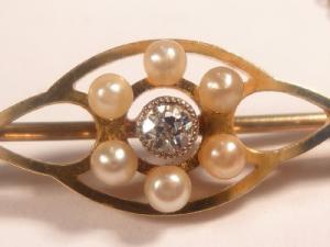 SUPER ANTIQUE 15CT GOLD PEARL & DIAMOND BAR BROOCH     Completed    $103.2