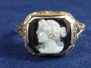 14k Rose Gold Antique Victorian Onyx Intaglio Ring     Completed    $103.5