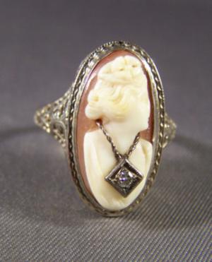ANTIQUE 14KT WHITE GOLD & DIAMOND CAMEO RING     Completed    $103.05