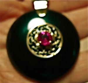 ANTIQUE ART DECO BLACK ONYX & PINK SAPPHIRE PENDANT     Completed    $102.59