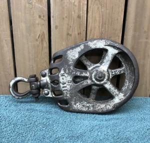 Antique Vintage Cast Iron And Wood Barn Pulley     Completed    $56