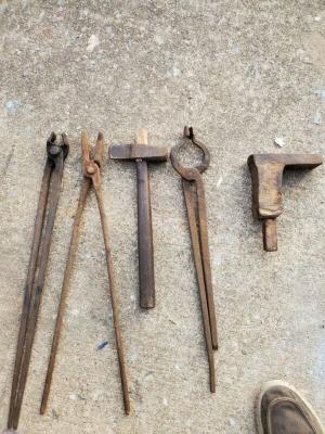 Blacksmith stump anvil cutting chisel and tongs     Completed    $52.77