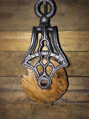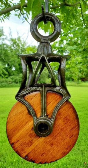 Antique Vintage Cast Iron And Wood Barn Pulley     Completed    $44