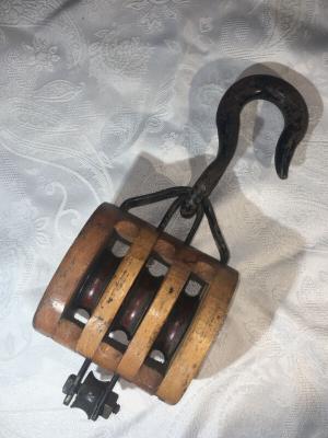 Antique Vintage Cast Iron And Wood Barn Pulley #201     Completed    $42.52