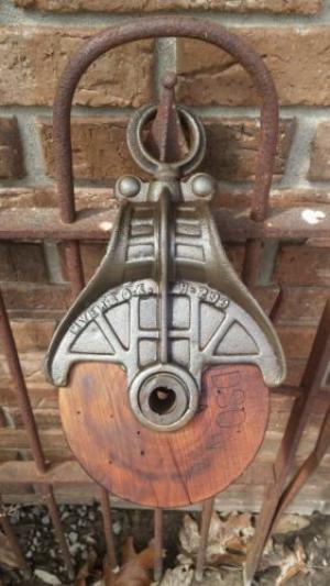 Antique Cast Iron & Wood Pulley Marked 141     Completed    $39