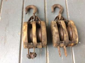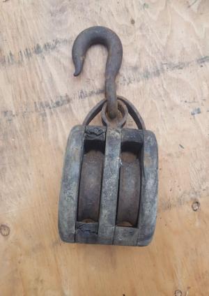 Vintage Double Wood Metal Pulley Large     Completed    $36