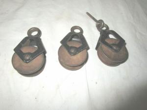 Three small antique vintage metal/wood pulleys     Completed    $33.08