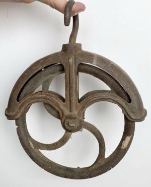 Antique Vintage Cast Iron And Wood Barn Pulley     Completed    $31