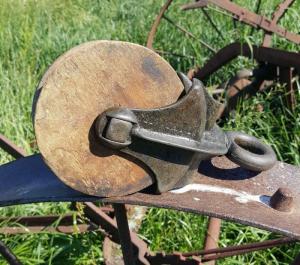 Vintage wood wheel and cast iron pulley     Completed    $30
