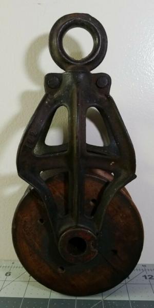 Antique Cast Iron & Wood Pulley No. 122     Completed    $26
