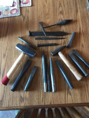 Vintage forge tool lot. Hammers, drifts, chisels.     Completed    $25.25