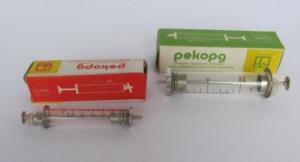 TWO VINTAGE MEDICAL BOXED GLASS & BRASS SYRINGES     Completed    $2.25